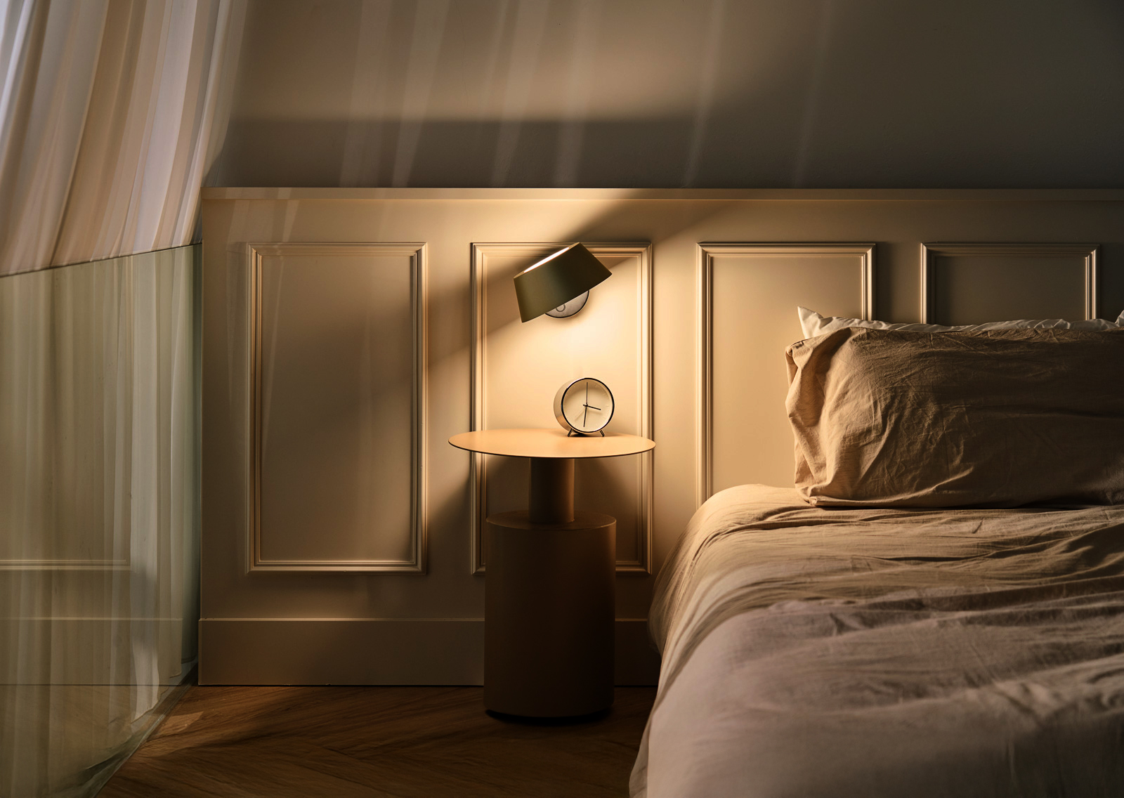 Lamps with smooth dimming, such as OLO, WÚ, or LING, allow the light to dim with the rhythm of the night.