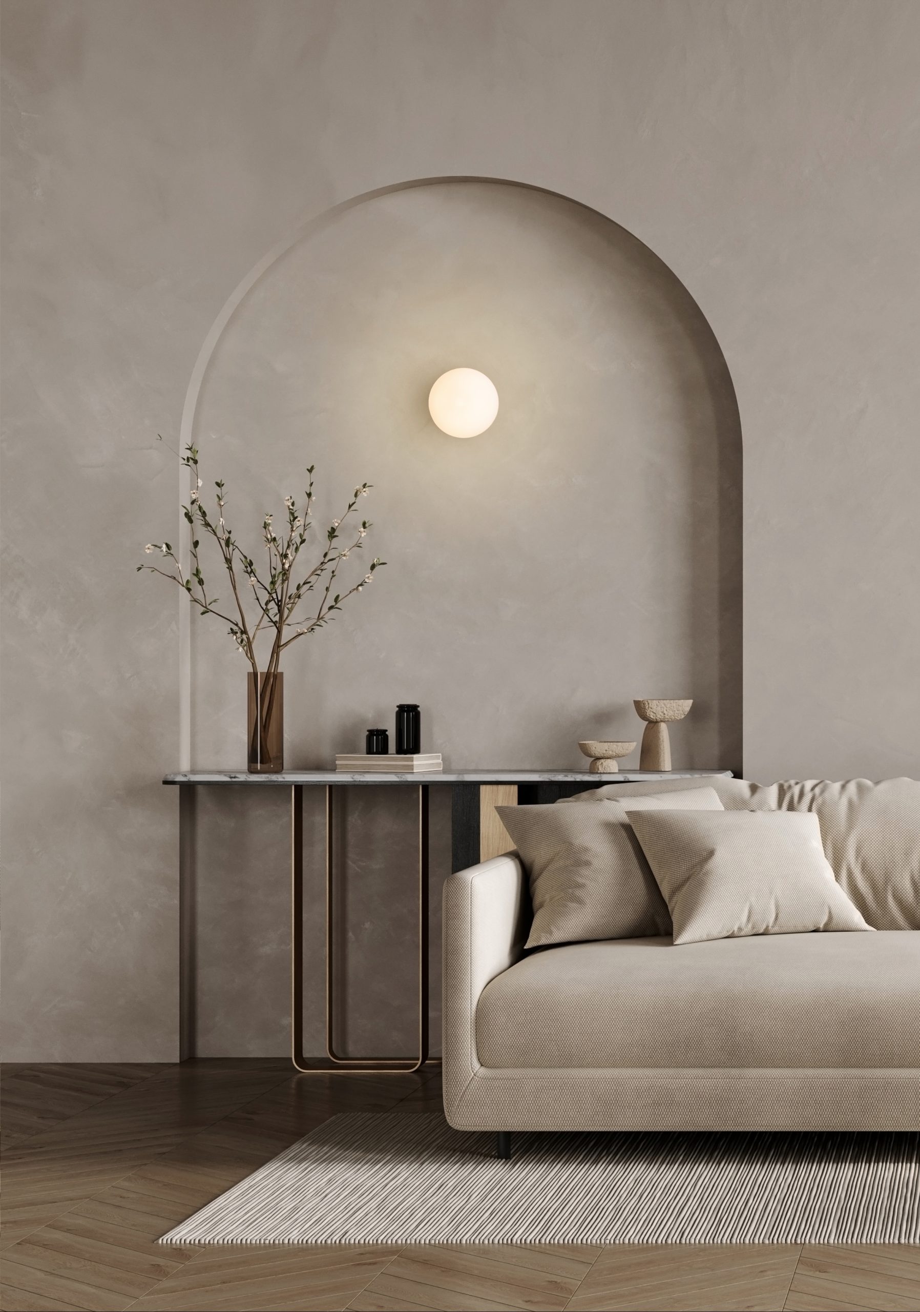 Four colour options allow the lamp and the wall to enter into a quiet dialogue. Sometimes it blends seamlessly into the background, letting the light take centre stage; sometimes it gently steps forward as a subtle mark within the space. With different wall materials and colours, the lamp reveals new characters—bringing quiet yet lasting variations to the interior.