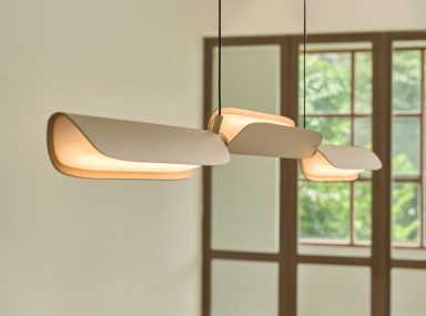 全系列涵蓋吊燈、樹燈、壁燈與桌燈,共五種形式,將流動之美帶入空間。