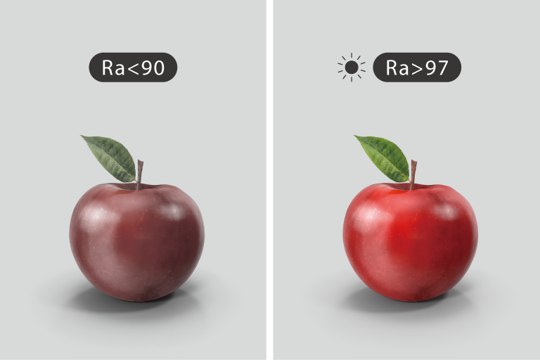Ra>97 全光譜 LED 接近太陽光,顯色更生動擬真,帶來溫暖而不刺眼的舒適光氛。